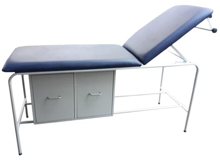 Camilla de examen resistente y funcional, equipada con cajones para un almacenamiento práctico. Ideal para clínicas, consultorios y centros de salud.