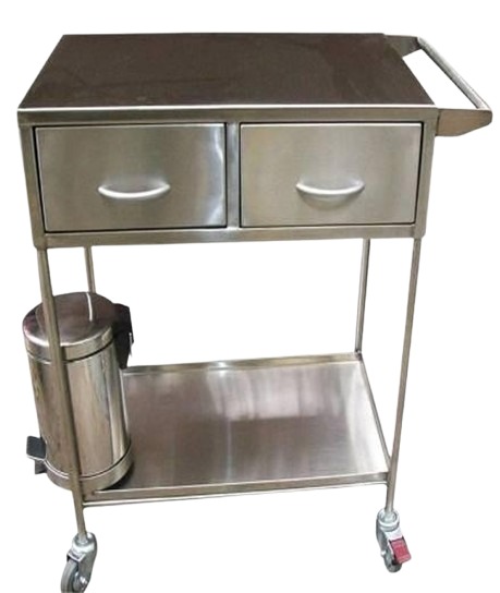 Carro de curación, resistente y funcional, ideal para organizar y transportar insumos médicos de manera eficiente durante procedimientos clínicos.